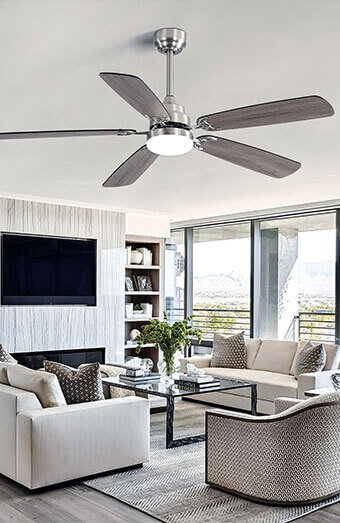 Installation or upgrade of ceiling fans with dedicated wall controllers for precise speed and direction management at the touch of a button, eliminating chain pulls.